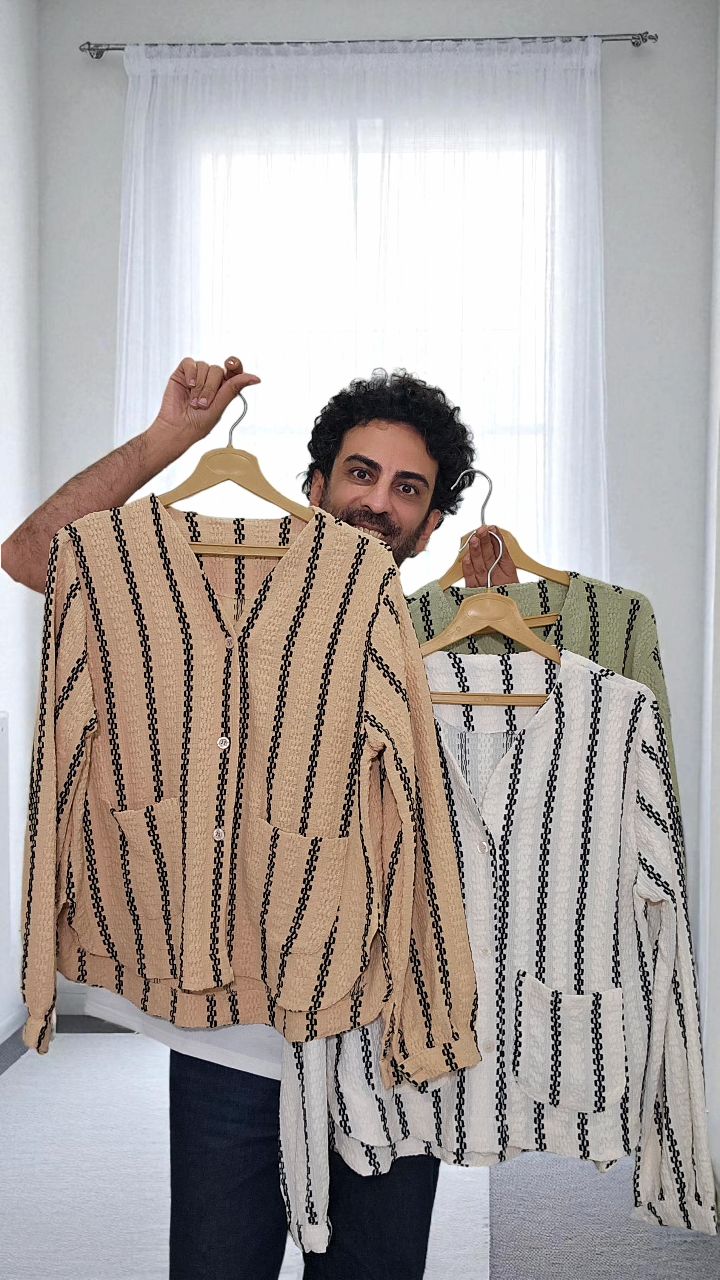 قد جلو ۶۳ پشت ۶۷ دورسینه ۱۲۰ قد آستین ۷۵ دور بازو ۴۶